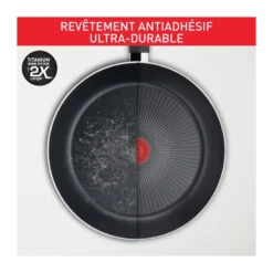 C2893202 – sauteuse anti-adhĂ©sive 24cm + couvercle – Avec la sauteuse C2893202 de Tefal au revĂȘtement antiadhĂ©sif rĂ©sistant pour la cuisine quotidienne, dĂ©couvrez la cuisine maison sans effort ! Forme profonde pour une expĂ©rience de cuisson Ă la maison plus agrĂ©able et des portions plus gĂ©nĂ©reuses. RevĂȘtement antiadhĂ©sif durable Titanium 2x de haute qualitĂ©, enrichi de particules de titane, qui dure jusqu`Ă 2 fois plus longtemps que le revĂȘtement Titanium standard de Tefal, pour une performance qui rĂ©siste aux cuissons les plus intensives, jour aprĂšs jour, repas aprĂšs repas. La technologie Thermo-Signalâą amĂ©liorĂ©e devient entiĂšrement rouge lorsque la poĂȘle a atteint la tempĂ©rature idĂ©ale de dĂ©marrage de cuisson, ce qui garantit des repas dĂ©licieux avec une couleur, une texture et une saveur parfaites Ă chaque fois. Induction avancĂ©e : la base Thermo-Fusionâą de Tefal assure une rĂ©partition rapide et optimale de la chaleur sur toute la surface de la poĂȘle, pour des aliments dĂ©licieux cuits Ă la perfection Ă chaque fois. ExtĂ©rieur avec revĂȘtement antiadhĂ©sif rouge pour un nettoyage facilitĂ©. Couvercle en verre avec orifice d`Ă©vacuation de la vapeur pour une montĂ©e rapide en tempĂ©rature, une surveillance facile et une rĂ©gulation de la vapeur pendent la cuisine. – Type de produit : Sauteuse.
