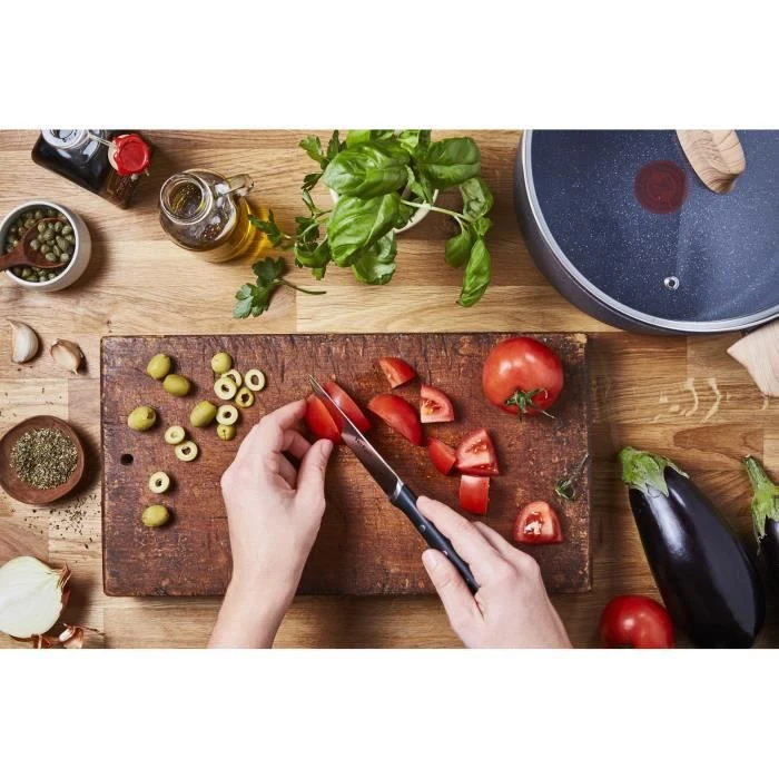 g2663202 – sauteuse anti-adhésive 24cm + couvercle – Sauteuse Natural Force Tefal G2663202 naturellement résistant. La gamme Tefal® Natural Force est indispensable pour cuisiner plus sainement au quotidien. Inspirée de la nature, la sauteuse Natural Force est équipée du nouveau revêtement antiadhésif Mineralia+ ultra-résistant enrichi en minéraux naturels pour des résultats antiadhésifs impressionnants, une cuisson sans ajout de matières grasses et des performances durables. Elle bénéficie des dernières innovations de Tefal® : Thermo-Signal? pour une cuisson parfaite et Thermo-Fusion+? pour une cuisson rapide et uniforme. Sauteuse Natural Force : naturellement résistante. Découvrez Natural Force, la sauteuse incontournable pour une cuisson saine. Elle est dotée du revêtement Mineralia+ antiadhésif extra-résistant de Tefal®, enrichi de silicate de calcium minéral naturel. Aussi dur que le fer, c’est un minéral exceptionnel. Pour préserver ses propriétés naturelles, il est extrait directement de la terre, sans aucun produit chimique utilisé ou ajouté lors de sa fabrication. Le résultat est un revêtement enrichi en calcium, offrant des performances antiadhésives éprouvées, pour une cuisson facile et faible en matières grasses, jour après jour. Les dernières innovations de Tefal® complètent l’ensemble : Thermo-Signal? pour une cuisson parfaite et Thermo-Fusion+? pour une cuisson rapide et uniforme. Grâce à son couvercle en verre et sa forme profonde, elle est indispensable pour braiser, faire sauter et préparer en toute simplicité des plats en sauce savoureux. – Type de produit : Sauteuse.