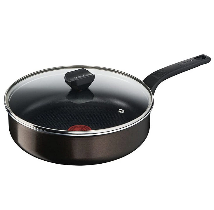 b5543302 – sauteuse anti-adhĂ©sive 26cm avec couvercle – Sauteuse Easy Cook & Clean Tefal B5543302. Tout le monde sait que la bonne cuisine prend un peu de temps, mais le nettoyage, lui ne le devrait pas. La gamme Tefal Easy Cook & Clean a Ă©tĂ© conçue pour vous facilier la vie au quotidien, avec des poĂȘles et casseroles 100 % revĂȘtues, extĂ©rieur et intĂ©rieur, pour un nettoyage facile et tout en douceur, et des caractĂ©ristiques spĂ©cifiques pour vous garantir des rĂ©sultats de cuisson parfaits. La gamme est compatible sur plaques gaz, Ă©lectriques et vitrocĂ©ramiques. 100 % facile Ă nettoyer, Ă l’intĂ©rieur et Ă l’extĂ©rieur : DĂ©couvez le nettoyage sans effort avec une sauteuse entiĂšrement revĂȘtue intĂ©rieur et extĂ©rieur pour un nettoyage facile en un clin d’oeil. Thermo-SignalÂź : MaĂźtrise parfaite de la tempĂ©rature. La technologie Thermo-SignalÂź est l’alliĂ©e des cuissons rĂ©ussies ! Facile d’utilisation, le Thermo-SignalÂź devient de couleur uniforme lorsque la poĂȘle a atteint la tempĂ©rature optimale de saisie des aliments et vous indique ainsi quand dĂ©marrer votre cuisson. RevĂȘtement intĂ©rieur antiadhĂ©sif Titanium : Le revĂȘtement antiadhĂ©sif Titanium de haute qualitĂ© est durable et rĂ©sistant grĂące Ă une structure ultra-renforcĂ©e et un revĂȘtement protecteur renforcĂ© de particules de titane. Il rĂ©siste aux agressions du quotidien et est facile Ă nettoyer. Forme idĂ©ale pour de dĂ©licieux rĂ©sultats : IdĂ©al pour cuire Ă l’Ă©touffĂ©e, braiser et mijoter lentement grĂące Ă sa forme large et profonde. Cuisson rĂ©ussie : La base de diffusion assure une rĂ©partition optimale de la chaleur pour des rĂ©sultats de cuisson homogĂšnes et dĂ©licieux. Prise en main confortable et sĂ»re : La poignĂ©e avec une zone texturĂ©e anti-glisse offre une ergonomie amĂ©liorĂ©e pour une bonne prise en main et un confort maximal. Couvercle en verre pratique : IdĂ©al pour une parfaite surveillance de vos plats , Ă©quipĂ© d’un orifice d’Ă©vacuation de la vapeur. Compatible tous feux sauf induction : Compatible avec les plaques de cuisson gaz, Ă©lectrique et vitrocĂ©ramique. FabriquĂ© en France : TefalÂź fabrique ses poĂȘles et casseroles en France Ă Rumilly, en Haute-Savoie. TefalÂź une cuisine saine et Ă©coresponsable : Notre objectif est de fabriquer des produits qui durent des annĂ©es, tout en prĂ©servant la santĂ© de notre planĂšte grĂące Ă des conceptions recyclables et des revĂȘtements antiadhĂ©sifs sĂ»rs (pas de PFOA, pas de plomb, pas de cadmium). – Type de produit : Sauteuse.