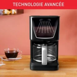 Une douchette extra-large pour une infusion parfaite du café, une préparation rapide et une saveur exceptionnelle en tasse !,La fonction programmable permet de programmer le cycle de préparation de votre café à l&s;avance : vous avez la possibilité d&s;un départ différé jusqu&s;à 24 heures,Une fonction AROMA pour gérer l&s;intensité de votre café ,Un arrêt automatique de la cafetière 30 minutes après son utilisation permet une sécurité et une tranquilité d&s;esprit totale ,Engagement de réparabilité 15 ans au juste prix grâce à notre réseau de 6200 réparateurs dans le monde, pour contribuer à la protection de l’environnement et à la réduction des déchets,Le système anti-goutte permet de servir le café pendant que le cycle de percolation est en marche, pour déguster un délicieux café chaud dès que vous en avez envie,Généreuse capacité de 1,25 L sur cette machine à café filtrer conçue pour 10 à 15 tasses – la quantité idéale pour une utilisation quotidienne et pour recevoir des invités