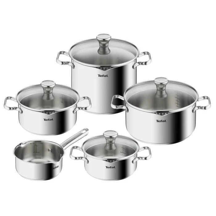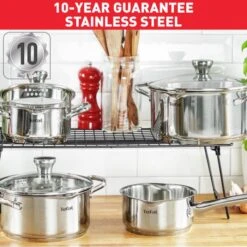 Des ustensiles de cuisine intelligemment conçus avec des couvercles filtrants et des becs verseurs spécifiques pour un égouttage facile et sans problème.,Batterie de cuisine de qualité supérieure, garantie 10 ans, de conception sûre et robuste, sans risque de détérioration dans le temps.,Conception intelligente avec des graduations intérieures intégrées pour des résultats parfaits à chaque fois.,Base Thermo-Fusionâ„¢ pour une cuisson rapide et uniforme et des performances durables – compatible avec toutes les plaques de cuisson, y compris l&s;induction.,Poignées sans interstice extra-résistantes pour plus de sécurité et une manipulation plus facile pendant la cuisson.,Ensemble essentiel de casseroles pour faire mijoter et bouillir les repas familiaux généreux tels que les pâtes et le riz, ainsi que les sauces délicates.