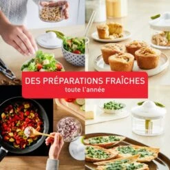 Préparez des repas délicieux en un rien de temps avec le hachoir 5 secondes de Tefal ! Émincez des oignons sans verser une larme, hachez des noix en toute simplicité et coupez des herbes en quelques secondes : la technologie et le design astucieux de ce hachoir manuel garantissent des résultats efficaces sur toutes sortes d’ingrédients. Il suffit de fixer les lames, d’ajouter les ingrédients, de fermer le couvercle et de tirer sur la poignée. Plus vous tirerez, plus les résultats seront fins.Â