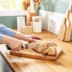 Couteau à pain avec lame refroidie à -120 °C pour des performances optimales et durables, Des performances qui durent jusqu&s;à 2 fois plus longtemps que les autres gammes en acier inoxydable de Tefal, Appartient à une gamme complète d&s;accessoires essentiels aux formes variées pour répondre à tous vos besoins de découpe, Lame de haute qualité en acier inoxydable allemand pour une résistance et des performances exceptionnelles dans le temps, Des produits conçus pour durer, garantis 10 ans, Esthétique classique et lignes épurées fusionnent dans un équilibre parfait ; un design idéal pour toutes les cuisines