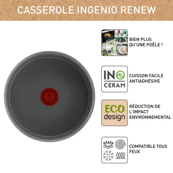 Système de poignée amovible pour une commodité et une polyvalence exceptionnelles au quotidien – de la plaque de cuisson au four et au réfrigérateur en toute simplicité,Une glisse sans effort jour après jour et une cuisine saine et pauvre en matières grasses facilitée par un revêtement céramique antiadhésif de nouvelle génération,Impact environnemental réduit grâce à un corps en aluminium 100 % recyclé*, un produit recyclable** et un emballage en fibres recyclées ; pour en savoir plus sur l&s;éco-conception, consultez le site tefal.com/ecodesign,Compatibilité complète avec les plaques de cuisson à gaz, électriques, vitrocéramique et à induction, ainsi qu&s;avec le four,Poignée amovible robuste (vendue séparément) avec système de sécurité à 3 points, supportant jusqu&s;à 10 kg*** et bénéficiant de notre garantie de 10 ans,L&s;indicateur de température Thermo-Signal™ change de couleur lorsque la poêle atteint la température idéale pour démarrer la cuisson, pour des saisies impeccables,Antiadhésif sans danger : des ustensiles de cuisson de haute qualité, sans danger pour toute la famille, sans PFOA, sans plomb et sans cadmium,Nos produits innovants sont fabriqués en France avec des matériaux de haute qualité et avec le plus grand soin.