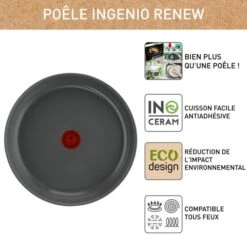 Système de poignée amovible pour une commodité et une polyvalence exceptionnelles au quotidien – de la plaque de cuisson au four et au réfrigérateur en toute simplicité,Une glisse sans effort jour après jour et une cuisine saine et pauvre en matières grasses facilitée par un revêtement céramique antiadhésif de nouvelle génération,Impact environnemental réduit grâce à un corps en aluminium 100 % recyclé*, un produit recyclable** et un emballage en fibres recyclées ; pour en savoir plus sur l&s;éco-conception, consultez le site tefal.com/ecodesign,Compatibilité complète avec les plaques de cuisson à gaz, électriques, vitrocéramique et à induction, ainsi qu&s;avec le four,Poignée amovible robuste (vendue séparément) avec système de sécurité à 3 points, supportant jusqu&s;à 10 kg*** et bénéficiant de notre garantie de 10 ans,L&s;indicateur de température Thermo-Signal change de couleur lorsque la poêle atteint la température idéale pour démarrer la cuisson, pour des saisies impeccables,Antiadhésif sans danger : des ustensiles de cuisson de haute qualité, sans danger pour toute la famille, sans PFOA, sans plomb et sans cadmium,Nos produits innovants sont fabriqués en France avec des matériaux de haute qualité et avec le plus grand soin.