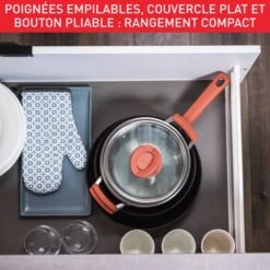 Profitez d’une cuisine parfaitement ordonnée, avec OPTI’Space ! Plus besoin d’encombrer vos placards de casseroles et de poêles – OPTI’Space vous permet d’empiler, de ranger et de gagner de la place grâce à un design astucieux, des poignées parfaitement empilables et des couvercles plats. Découvrez des casseroles et des poêles en inox polyvalentes, passant facilement de la cuisinière au four et au réfrigérateur, tout en promettant des résultats délicieux à tous les coups. Idéales pour un usage quotidien, elles sont dotées de poignées anti-dérapantes qui restent froides pour plus de confort et de sécurité.