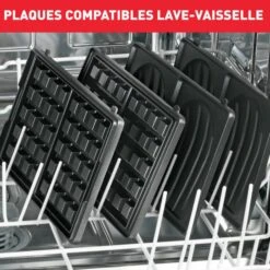 Appareil multifonction avec 2 jeux de plaques amovibles pour de délicieuses gaufres maison et des croque-triangle parfaitement dorés,16 jeux de plaques à collectionner (non inclus) pour préparer des beignets, des pancakes, des paninis, des bagels et bien plus. Collectionnez-les tous !,Rangement ingénieux des plaques dans des coffrets dédiés incluant un livret de recettes,Témoins lumineux qui indiquent quand les plaques sont suffisamment chaudes pour lancer la cuisson,Plaques dotées d&s;un revêtement antiadhésif pour des résultats parfaits,Plaques compatibles lave-vaisselle pour un nettoyage sans effort,Engagement de réparabilité 15 ans au juste prix grâce à notre réseau de 6200 réparateurs dans le monde