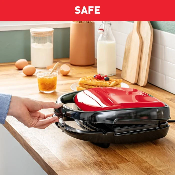 Avec Snack Time, profitez de snacks gourmands Ă chaque moment de la journĂ©e ! Envie d’une gaufre ou encore d’un croque monsieur ? Ce croque gaufre dispose d’une collection de plaques interchangeables afin de varier les plaisirs et les envies. Il dispose de plus d’une poignĂ©e isolĂ©e afin d’ouvrir le croque gaufre sans se brĂ»ler, d’un loquet de verouillage pour sĂ©curiser l’ouverture ainsi que de plaques antidĂ©rapantes lavables au lave vaisselle. Il est donc Ă la fois sĂ»r Ă utiliser et facile Ă nettoyer