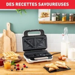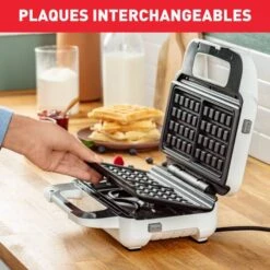 Des plaques XL, plus profondes et plus larges, pour des gaufres et des sandwiches extra-généreux garnis de tous vos ingrédients préférés,Deux plaques profondes et interchangeables pour un appareil à croque-monsieur et à gaufre combiné,Un livre de recettes avec des idées savoureuses pour vous inspirer,Design offrant un rangement vertical pour gagner de la place dans vos placards de cuisine,Puissance de 850 W pour des aliments parfaitement grillés et savoureux,Plaques compatibles lave-vaisselle pour un nettoyage sans effort,Engagement de réparabilité 15 ans au juste prix grùce à notre réseau de 6200 réparateurs dans le monde